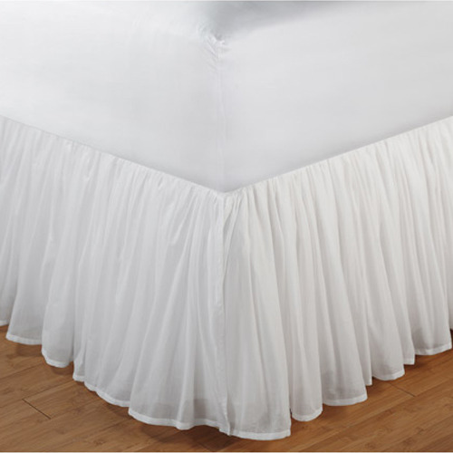 A bed skirt or bed frill is a decorative bedding thing that increases the decor of your bed. It is also used to prevents settling dust under the bed and also helps us in hiding the box spring part and other material kept under the bed.